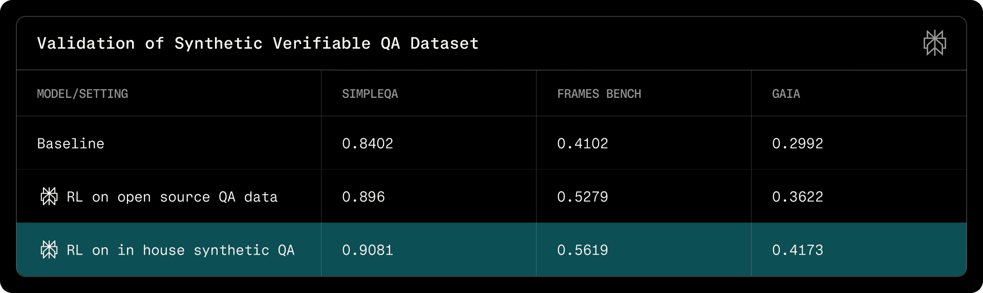 Table 1 | Validation of Synthetic Verifiable QA Dataset