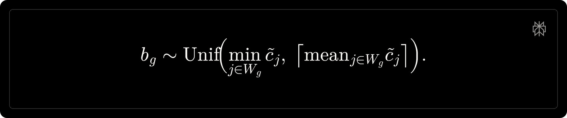 We compute the excess [math]\Delta_i = \max\!\left(0,\; \tilde{c}_i - b_g\right)[/math], and define a smooth penalty scalar [math]p_i = 1 - \exp\!\left(-\Delta_i\right)[/math]. The tool penalty is then: